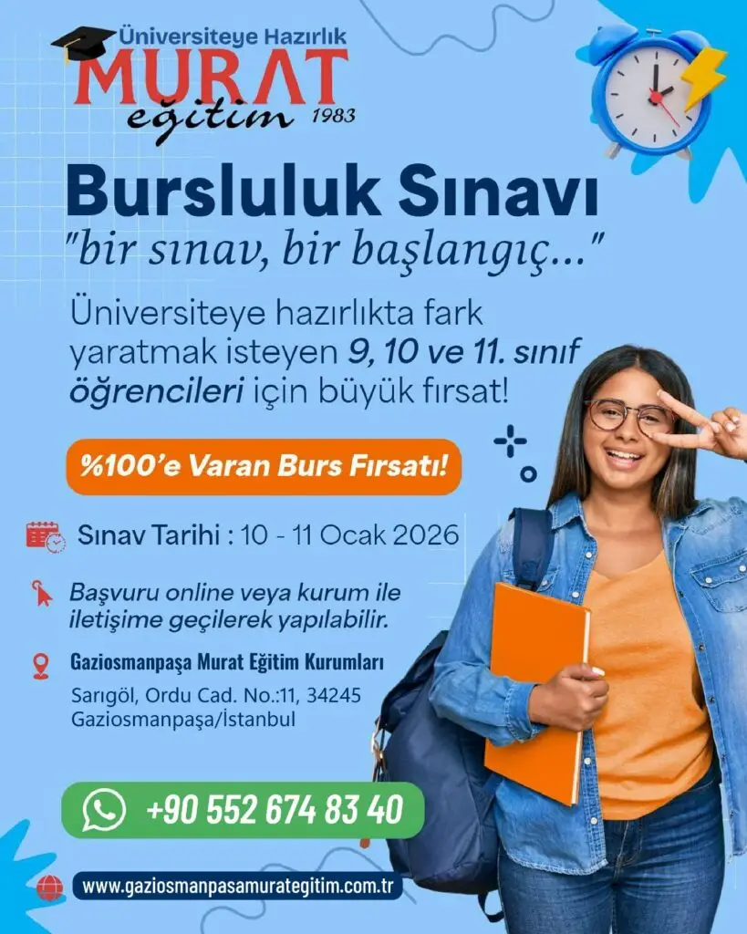 10-11 Ocak tarihlerinde gerçekleştirilecek bursluluk sınavımızda öğrencilerimize %100’den %25’e varan eğitim bursu imkânı sunulacaktır.